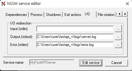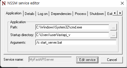 nssm edit MyFastAPIServer